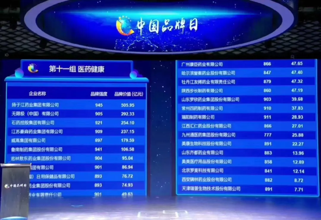 5月10日,“2020中國品牌價值評價信息發布會”線上召開,揚子江藥業集團有限公司以品牌強度945分、品牌價值505.95億元,雙雙獲得醫藥健康板塊第一名。這也是揚子江繼2016年、2019年獲得醫藥健康板塊品牌強度、品牌價值“雙第一”之后再度問鼎。